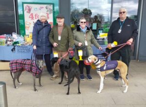 We’ll have some greyhounds for you to meet and it’s an ideal opportunity to come along and find out what wonderful pets they make. We’d love you to stop for a chat if you’re out shopping.