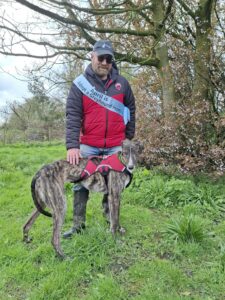 3.5 year old dark brindle and white lad JOEL arrived with us on 20th March 2026.