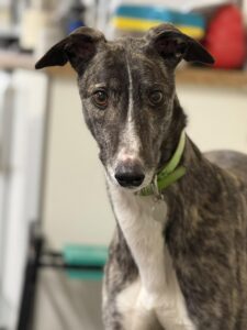 It’s still early days for JOEL but he is settling in well. He is a quiet, timid boy and would benefit from being homed where there is already another greyhound in the home. We would also need a prospective adopter to be around at home, especially in the early days. More information to follow as we get to know this lovely boy.